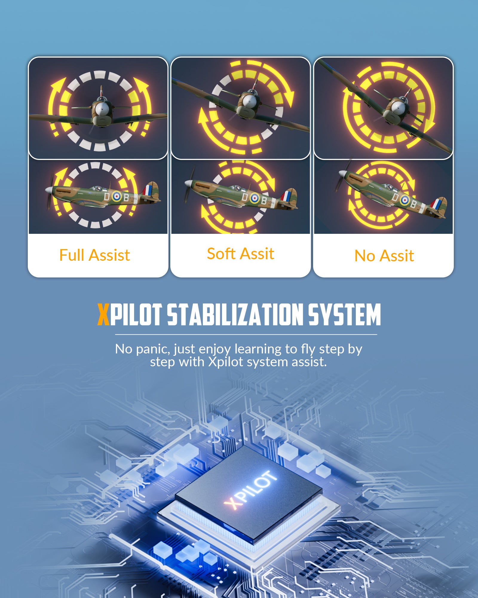 VOLANTEXRC Brushless 4CH 500MM Supermarine Spitfre Crossair Brushless Airplane with 6-Axis Gyro, 3 Modes & Aerobatics, 2.4GHz Radio Controlled Aircraft for Beginners, Boys & Adults