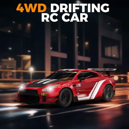 This is a fun 4WD remote control (RC) drift car, perfect for racing indoors or outdoors. It’s easy to control, moving forward, backward, left, right, and adjusting speed smoothly.