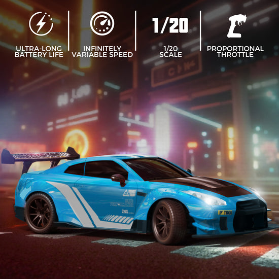 RACENT 1:20 RC Drift Car 4WD, LED Light, 2 Batteries Blue